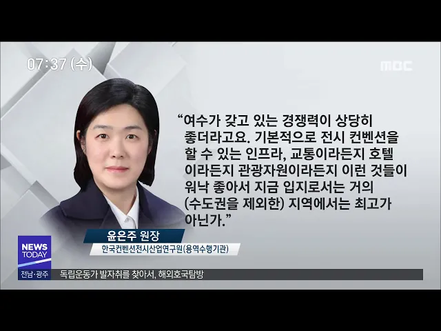 ◀ANC▶ 여수세계박람회장에 건립을 타진중인 대규모의 공공 전시 컨벤션 센터가 윤곽을 드러냈습니다. 이 시설이 지역에 어떤 의미가 있고 과연 어느정도 현실성이 있는지, 박광수 기자가 취재했습니다. ◀END▶ 광주 김대중 컨벤션 센터입니다. 총 전시장 면적이 모두 12,000제곱미터, 수도권을 제외하면 전국 세번째 ...