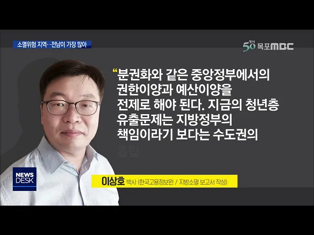 ◀ANC▶ 전국 시군구 평균 10곳 중 4곳이 인구부족으로 장래 자치단체를 유지할 수 없다는 소멸위험지역으로 나타났습니다. 전라남도는 매우 심각한 상황으로 22개 시군 가운데 무려 16개 군이 소멸위험 대상입니다. 물론 현재를 기준으로 했기 때문에 변수는 있다지만 지방정부의 차원이 다른 집중과 선택이 요구되고 있...