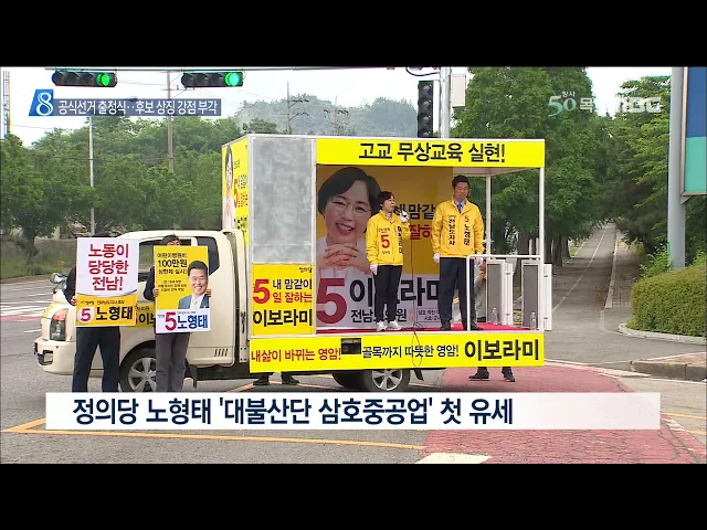 ◀ANC▶ 6.13 지방선거 공식 선거운동이 전남 곳곳에서 일제히 시작됐습니다. 5명의 전남 도지사 후보들은 정당의 상징성과 후보의 강점을 드러낸 출정식을 통해 도정의 적임자 임을 강조했습니다. 장용기 기자가 보도합니다. ◀END▶ ========== 더불어 민주당 김영록후보는 목포 새벽시장 상인 방문으로 첫 공식 선거...