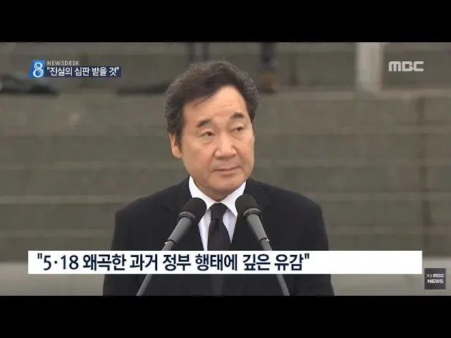 (정) 5.18 38주년 특집으로 오늘은 광주·목포·여수MBC 통합뉴스로 진행합니다. 5.18 기념식에서 이낙연 국무총리가 5.18 역사 왜곡에 대해 깊은 유감을 표시했습니다. (구) 진상 규명에 대한 기대 속에 오늘 기념식은 한편의 드라마처럼 꾸며졌습니다. 먼저 기념식 소식을 윤근수 기자가 전해드립니다. (기자) 부슬부슬 비...