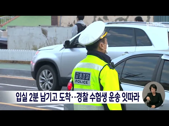 2025학년도 수능일인 오늘경찰이 수험생들의 정시 입실을 돕는 등지원 활동을 벌였습니다.오늘(14) 오전 목포에서는 수능시험장을 착각한 수험생을 하당지구대 경찰관들이 도와입실 시간을 2분 여 남기고 이송을 마쳤습니다.여수에서도 정체된 도로 위에 있던 수험생 탑승 차량을 경찰용 오토바이로 에스코트해 시험장까지 ...