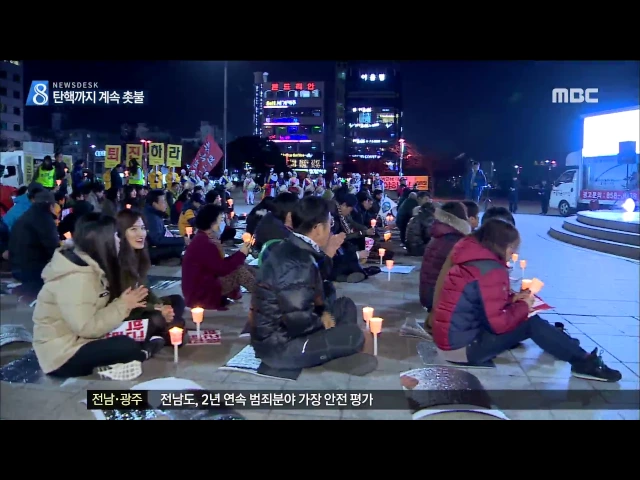 ◀ANC▶ 박근혜 대통령의 탄핵소추안 표결을 하루 앞두고 전국이 들끓고 있습니다. 전남 곳곳에서도 시국집회가 열려 국회에 대통령 탄핵안 가결을 압박하고 있습니다. 김진선 기자가 취재했습니다. ◀END▶ ◀VCR▶ 시험 기간, 어두워진 대학 광장에 촛불이 하나둘 켜졌습니다. 박근혜 대통령 탄핵 표결을 앞두고 교수 ...