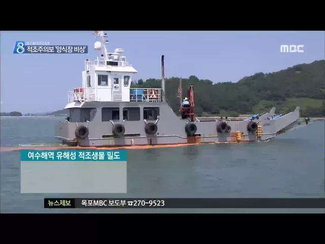 올해 처음 장흥과 여수 해역에 적조 출현주의보가 발령됐습니다. 전라남도는 어제부터 해당 해역에 방제선 3척을 투입해 분말 황토를 뿌려 적조 확산을 막고 있으며 사태가 악화되면 생황토 살포와 선박이 물살을 일으켜 적조생물을 분쇄하는 수류 방제도 실시할 계획입니다. 지난해 전남에는 8월 5일 첫 적조가 발생해 2...