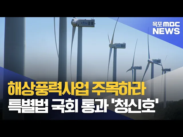 ◀ 앵 커 ▶전라남도가 핵심 현안 가운데 하나인해상풍력사업에 속도를 내고 있습니다.이를 뒷받침하기 위한 해상풍력지원특별법의22대 국회 통과에도 청신호가 켜졌습니다.김양훈 기자가 보도합니다.◀ 리포트 ▶단일 단지로는 세계 최대 규모인신안 8.2 기가와트 해상풍력단지전남은 신안을 포함해 30 기가와트 대규모해상풍...