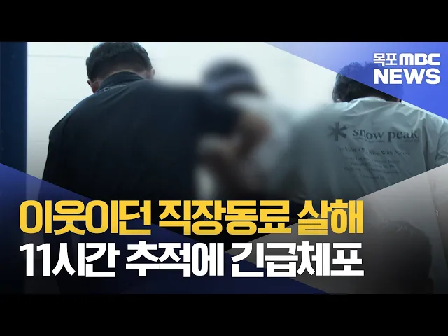◀ 앵 커 ▶목포의 한 주택에서이웃에 살던 직장동료를 살해한 남성이경찰에 체포됐습니다.이 남성은 범행 직후 피해자의 아내를 차에 태워 도주했다11시간여 만에 검거됐습니다.안준호 기자가 취재했습니다.◀ 리포트 ▶주택 앞 골목으로 사이렌 불빛이 비치더니경찰과 119대원들이 도착합니다.오늘(3) 새벽 2시 40분쯤 목포의...