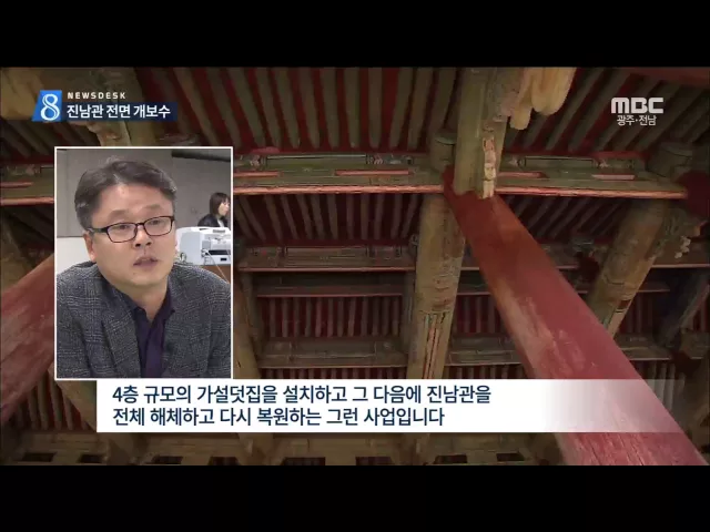 ◀ANC▶ 국보 제304호인 여수 진남관 해체.복원 사업이 내년 초부터 본격 시작됩니다. 앞으로 4년간 150억 원이 투입됩니다. 박민주 기자입니다. ◀END▶ 국보 제304호인 여수 진남관, 진남관은 임진왜란 당시 이순신 장군이 전라좌수영의 본영으로 사용했던 곳입니다. 하지만 붕괴 위험에 노출되면서 복원이 시급했던 상...
