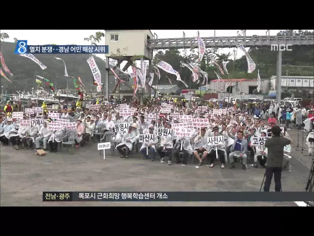 ◀ANC▶ 최근 전남과 경남 사이 해상에 '도 경계'가 있다는 대법원 판결이 있었는데요. 이에 반발하는 경남 어민들이 오늘(22) 대규모 해상 시위를 열었는데. 갈등을 조정할 수 있는 정부 부처들은 뒷짐만 지고 있습니다. 권남기 기자입니다. ◀VCR▶ 여수 앞바다에 바짝 다가선 어선들. S/U)전남과 경남 사이 해상에 '도...