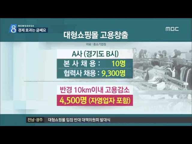◀ANC▶ 대형유통점 관련 연속보도 순서 입니다. 대형쇼핑몰을 유치할 때마다 지자체가 내세우는 명분은 경제 효과 입니다. 그러나 고용 등 경제유발효과를 분석해 보면 오히려 역효과가 우려되고 있습니다. 신광하 기자가 보도합니다. ◀VCR▶ 대형 쇼핑몰 입점을 바라보는 지자체의 정책방향은 투자유치 입니다. ◀주동...