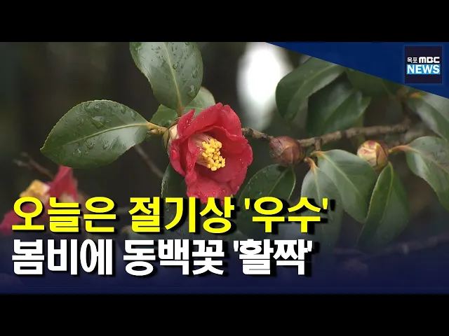 ◀ 앵 커 ▶오늘(20)은눈이 녹아 비가 내린다는 절기상 우수입니다. 2월들어 비교적 많은 비와 함께기온도 예년보다 높았습니다. 오동도의 동백은 붉은 꽃망울을 터뜨렸고, 봄비를 기다린 농민들의 얼굴에도 웃음꽃이 피었습니다. 최황지 기자입니다. ◀ 리포트 ▶한겨울 웅크리고 있던 붉은 동백에 봄비가 송알송알 맺혔습니다...