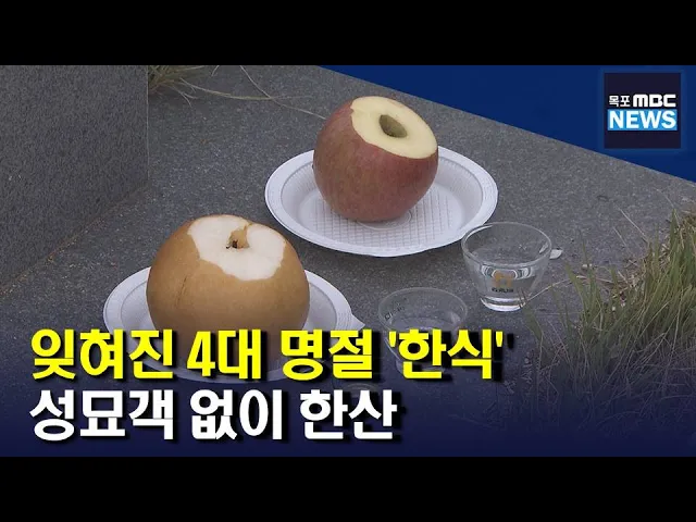 ◀ANC▶ 오늘(6)은 예로부터 찬 음식을 먹고, 조상의 묘를 돌보는 전통 4대 명절 가운데 하나인 한식입니다. 하지만, 현대인들의 일상 속에서 의미가 퇴색되고 장묘 문화까지 변화하면서 잊혀져가는 명절이 되고 있습니다. 유민호 기자입니다. ◀VCR▶ 여수의 한 공설묘지입니다. 소박한 과일과 함께 소주 두 잔이 비석 ...