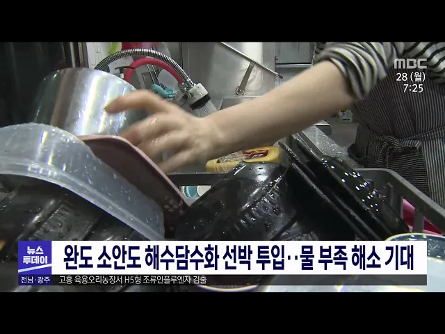 역대 최악의 가뭄으로 2일급수 5일 단수와 함께 운반급수가 이뤄지고 있는 완도 섬지역에 '해수담수화 선박'이 투입됩니다. 환경부산하 한국환경산업기술원 등에 따르면 천7백톤급 해수담수화 플랜트 선박 '드림즈'가 완도 소안도에 정박해 하루 3백톤의 식수를 공급할 예정입니다. 해수담수화 플랜트 선박은 현재 여수에...