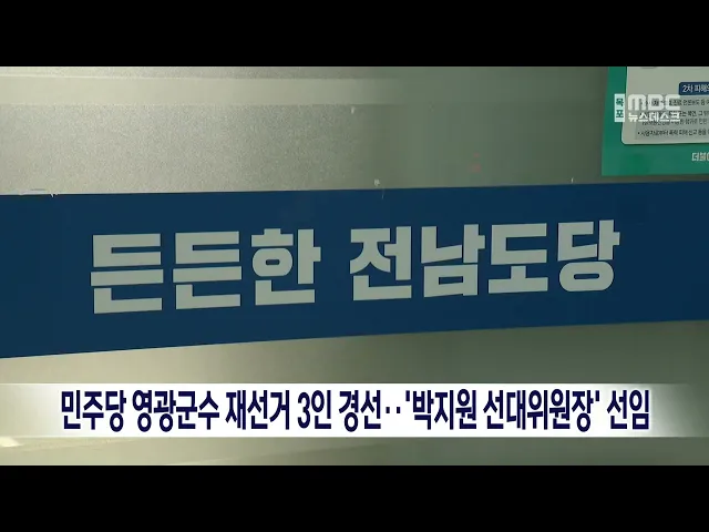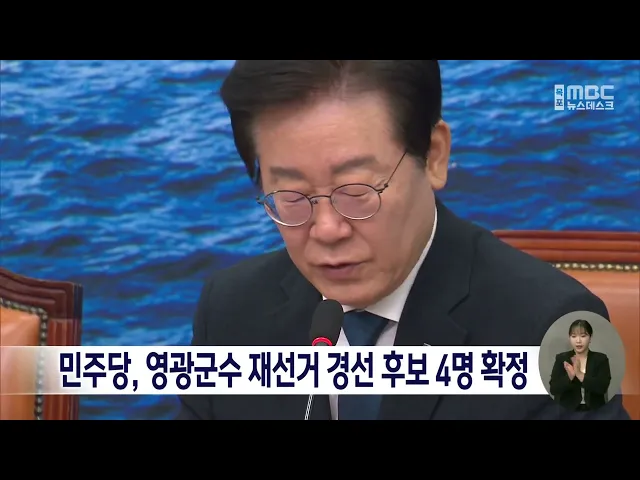 더불어민주당이 영광군수 재선거에 나설 당내 경선 후보 4명을 확정했습니다.민주당은 어제(28) 최고위원회의를 열고영광군수 재선거에 경선 후보로 등록한6명 가운데 4명을 경선에 붙이기로최종 결정했습니다.경선은 안심번호 선거인단 50%와권리당원 50%로 이뤄지며,1차 경선과 결선 투표를 통해 최종 후보를 결정합니다....