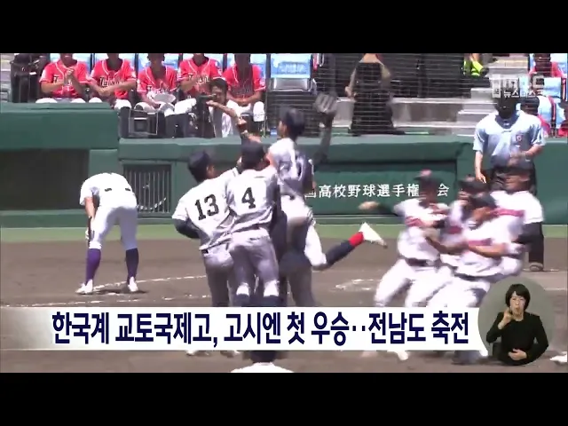 일본 전국고교야구선수권대회에서한국계 학교 교토국제고가 사상 첫 우승을차지하면서 전라남도가 축전을 보냈습니다.김영록 지사는 축전을 통해 "일본 야구장에서 우승의 영광 속에 울려 퍼진한국어 교가가 국민에게 큰 감동을 줬다"며 축하와 응원을 전했습니다.교토국제고는 오늘(23) 효고현 니시노미야시에서 열린 결승...
