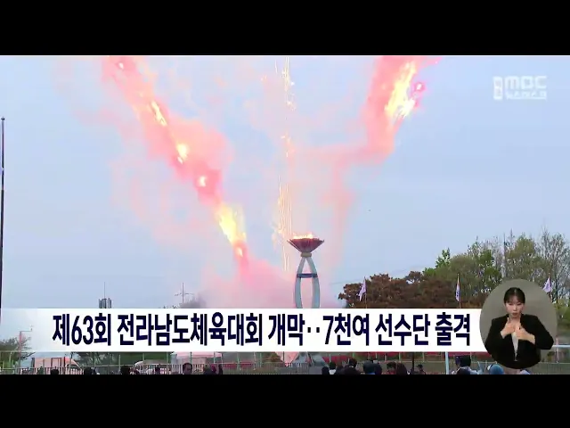 올해로 63회 째를 맞는 전라남도체육대회가영광에서 개막했습니다.'뛰어라! 위대한 영광, 열어라! 희망찬 전남'이라는 주제로 열리는 이번 전남체전은22개의 정식종목과 시범종목, 전시종목 등모두 24개 종목이 펼쳐질 예정입니다.올해 전남체전에는 전남 22개 시군,7천여 명의 선수와 임원들이 참가해오는 20일까지 열전을...