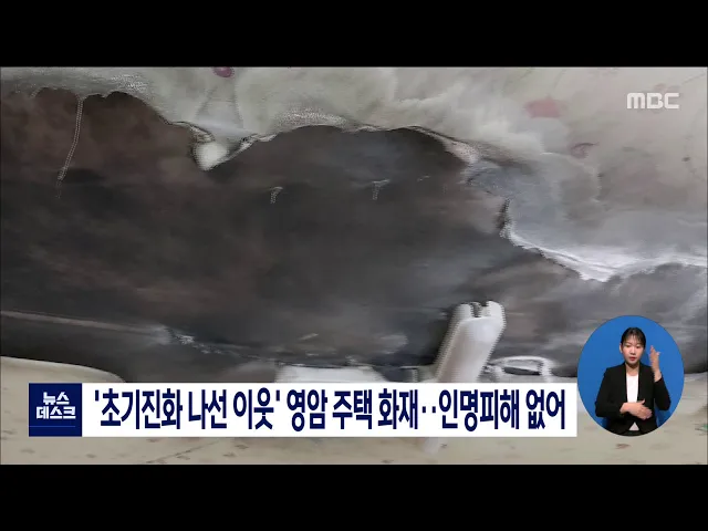 고령자가 사는 주택에서 불이 났지만 이웃의 신속한 대처로 1분여만에 진화됐습니다. 어제 오전 8시 40분쯤 영암군 삼호읍에서 92살 A 씨가 사는 주택에서 화재가 발생했지만 큰 불로 번지기 전에 이웃 69살 서 모씨에 의해 1분여만에 진화됐습니다. 소방당국은 전기적 요인으로 불이 난 것으로 보고 정확한 화재 원인을 ...