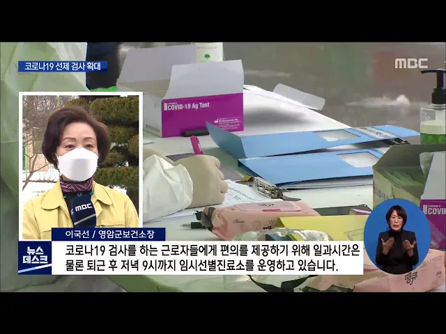 ◀ANC▶ 코로나19 확산 방지를 위해 선제 검사대상이 확대되고 있습니다. 일부 지자체는 산업단지 내 모든 근로자들을 대상으로 코로나19 전수검사를 진행하고 있습니다. 김양훈 기자가 취재했습니다. ◀END▶ 임시선별진료소가 차려진 영암의 한 공용주차장 대불산단에서 일하는 외국인 근로자들이 코로나19 진단검사를...