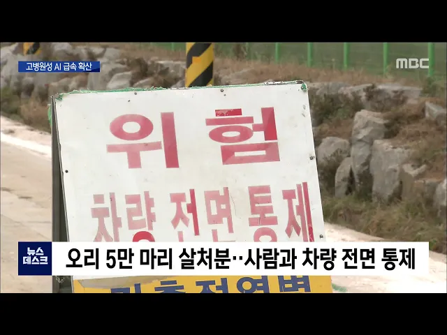 ◀ANC▶영암 육용오리농장 2곳에서 고병원성 AI가 추가로 확진됐습니다.전국 12곳의 고병원성 AI 발생지 가운데6곳이 전남에 몰려 있어 전라남도 방역당국에 비상이 걸렸습니다.김양훈 기자가 취재했습니다. ◀END▶전남 영암의 한 오리농장 길목이 차단돼 있습니다.방역복을 입은 축산당국 관계자들이농장 주변을 분주...