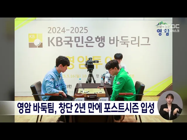 최근 영암 출신 조훈현 국수를 다룬 영화 '승부'가 인기를 끌고 있는 가운데, 영암군 바둑팀이 창단 2년 만에 포스트시즌에 입성했습니다.'마한의심장 영암'팀은 올해 정규리그에서8승 6패를 기록해 최종 4위로 포스트시즌에올랐으며, 내일(22)부터 이틀 동안 한국기원에서 열리는 준플레이오프에서 2연승을 거두면 플레이...