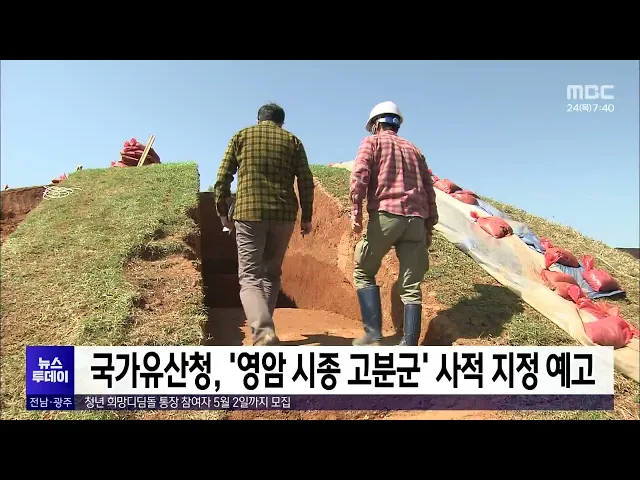 국가유산청이 영암군 '시종 고분군'을국가지정문화유산 사적으로 지정 예고했습니다.시종면 옥야리에 있는 고분군은'옥야리 장동 방대형 고분'과 '내동리 쌍무덤'으로 이뤄졌으며,지역 사회와 문화적 변화를 고분의 조성과 축조기술 등을 통해 잘 보여주고 있어역사적 학술적 가치를 인정받았습니다.국가유산청은 30일 간의...