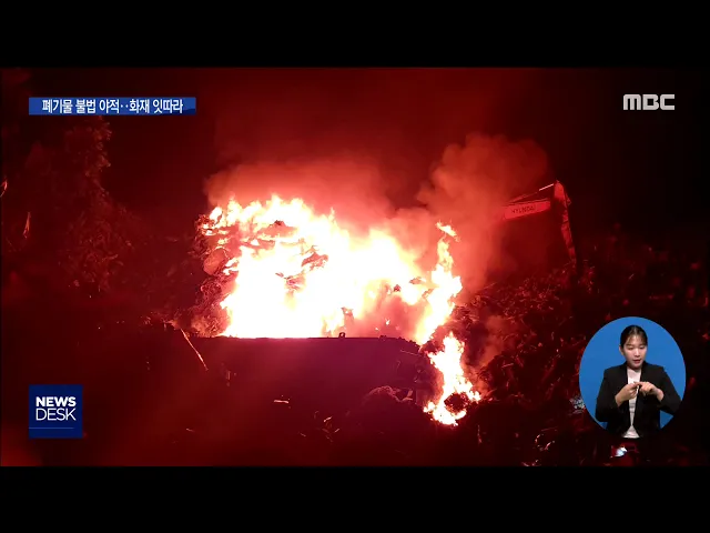 ◀ANC▶ 최근 열흘 사이 같은 고물상 야적장에서 3차례나 불이 나 화재원인에 대한 궁금증이 커지고 있습니다. MBC 취재결과 불이 난 고물상에는 수백여톤의 폐기물이 불법 야적돼 있었던 것으로 확인됐습니다. 김양훈 기자가 취재했습니다. ◀END▶ 검은 연기와 함께 시뻘건 화염이 치솟습니다. 영암의 한 고물상 야적장...