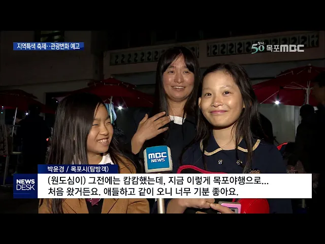 ◀ANC▶ 이번 주말 목포 등 전남 서남권에서는 지역의 역사성과 강점을 살린 뜻깊은 축제행사가 탐방객의 발길을 끌었습니다. 관광의 색다른 변화를 예고하는 하루였습니다. 장용기기자가 종합했습니다. ◀END▶ -------------- 목포 원도심에서는 지난달에 이어 근대역사문화자원을 보고 즐기는 두번째 목포 밤나들이 행...