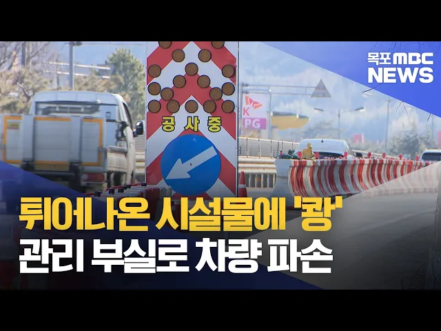 ◀ 앵 커 ▶도로와 공사장을 구분 짓고, 차량을 안전한 경로로 유도하기 위한'임시 울타리' 한 번쯤 보셨을 텐데요.일부가 제대로 관리되지 않은 채 방치되고, 급기야 차도로 침범하면서 차량이 부딪히는 사고까지 발생하고 있습니다.김규희 기자가 보도합니다.◀ 리포트 ▶인접한 비탈길에서 수해복구공사가 예정 중인영암의 ...