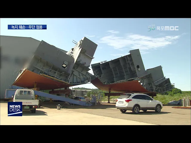 ◀ANC▶ 국가산업단지에 입주한 한 업체가 완충녹지를 밀어버리고 야적장으로 쓰고 있습니다. 무단으로 훼손한 녹지가 무려 만 제곱미터를 넘는데도 지자체는 알지 못했다고 해명합니다. 문연철 기자가 보도합니다. ◀END▶ ◀VCR▶ 영암 국가산업단지의 한 입주기업입니다. 공장 건물 뒷편의 공한지에 여러 선박용 블...