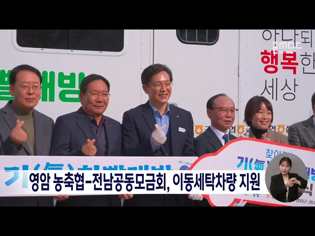 영암 농·축협과 전남공동모금회가 영암시니어클럽이 운영하는 기찬빨래방에이동세탁차량을 전달했습니다.이동세탁차량은 세탁기 3대와 건조기 1대를 보유하고 있으며다음 달부터 읍면 취약계층과 거동이 불편한 가구 등을 대상으로빨래 봉사에 나설 예정입니다.