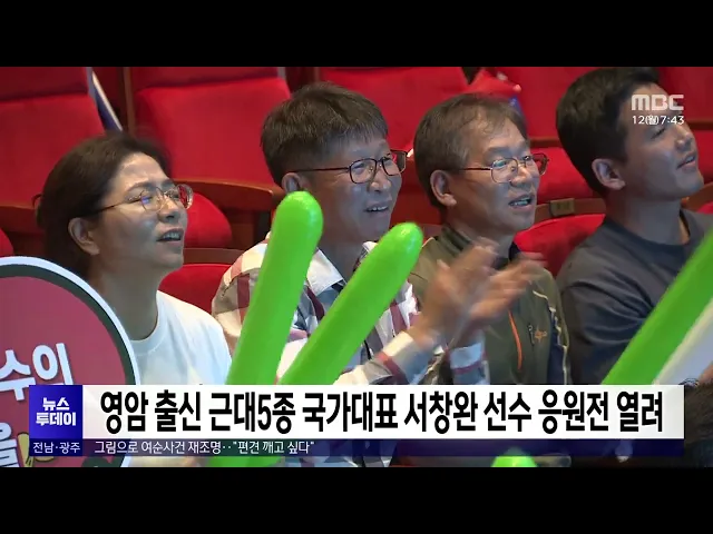 영암군 출신 근대5종 국가대표 서창완 선수의 파리 올림픽 결승 진출을 기념한 응원전이 영암에서 열렸습니다.오늘(11) 새벽 영암 군수와 군민 등 100여 명은영암한국트로트가요센터에 모여 파리 올림픽 근대5종 결승 경기를 함께 시청하고 서 선수를 향한 열띤 응원전을 펼쳤습니다.서 선수는 영암군 영암읍 교동리에서 태...