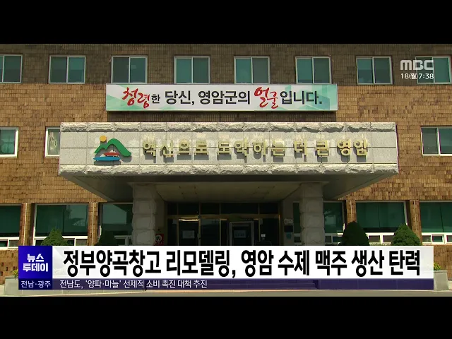 수십 년 동안 방치돼 온 영암읍 회문리의 정부양곡창고인 대동공장이 수제 맥주 제조공간으로 리모델링 되는 등영암을 대표하는 수제 맥주 생산에 탄력이 붙을 전망입니다.전라남도 주관의 ‘2024년 농촌자원 복합산업화 지원사업’에 최종 선정돼 예산 10억원을 확보한 영암군은내년 시판을 목표로 양조장을 설립해월출산 맥...