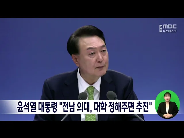 윤석열 대통령이 전남에서 열린 20번째 민생토론회에서 전남 의대 신설과 관련해 "전라남도에서 어느 대학으로 할지 결정하면 추진하겠다"고 밝혔습니다. 이는 김영록 전남지사가 전남 국립의과대 설립을 건의한데 대한답변으로 윤 대통령은 "대선 당시부터 이야기를 많이 들었다"며 전라남도에서 의견수렴을 통해 대학...