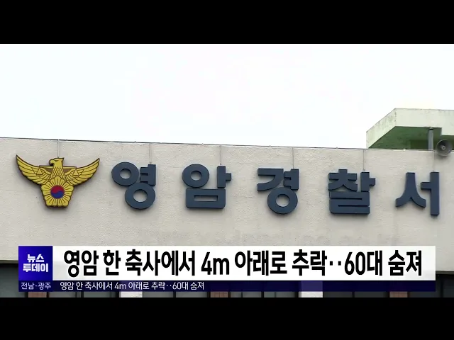 어제 오전 11시 45분쯤영암군 서호면의 한 축사에서 60대 남성이 4m 아래 담벼락 외벽 사이로 추락해병원으로 이송됐지만 숨졌습니다.경찰은 남성이 지붕 수리를 하던 중사고를 당한 것으로 보고가족 등 목격자 진술을 토대로 정확한 경위를 조사하고 있습니다.