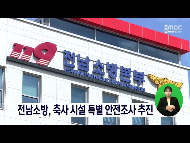 전남소방본부는최근 영암에서 발생한 축사 화재 재발 방지를 위해 지역 축사 373곳에 대한 특별 안전 조사에 나섭니다. 이번 조사는 다음달 11일까지소방시설 정상 작동 여부와 소화기 등 관리 실태, 노후 전기설비 교체 지도 등을 확인하고 안전 컨설팅을 진행할 계획입니다.