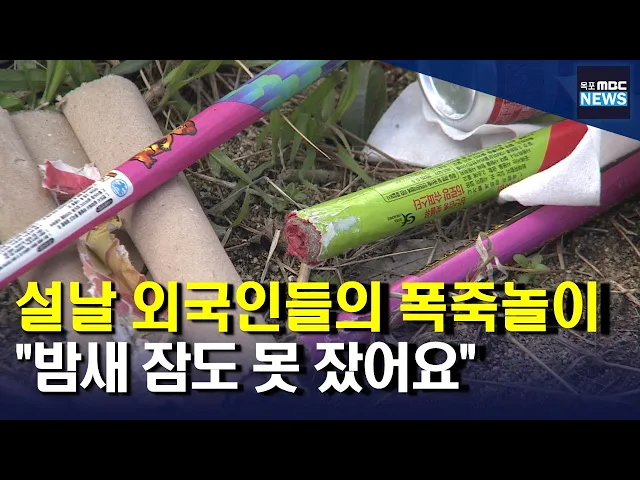 설날 자정 무렵 영암의 한 주거 밀집지역에서 외국인들이 중국 춘절 문화인 폭죽놀이를 장시간 진행해서 주민 불편이 잇따랐다는 MBC보도 이후 관계 기관들이 대책 마련에 나섰습니다.영암군과 영암경찰서 등 관계기관들은오늘(14) 삼호읍 주민들을 직접 만나폭죽놀이 당시 소음 피해 상황을 확인하고주민들의 건의사항을 ...