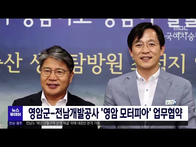영암군과 전남개발공사가 영암 모터피아 스포츠 관광 특화사업 업무협약을 체결했습니다. 두 기관은 이번 협약에 따라 지난 4월 선정된 문체부 공모 지역특화 스포츠관광산업의 성공적인 육성을 위해 F1경주장 활성화, 스포츠관광 메카 영암 만들기, 새로 일자리 창출 행사 개최 등에 적극 협력하기로 했습니다. 영암 F1국...