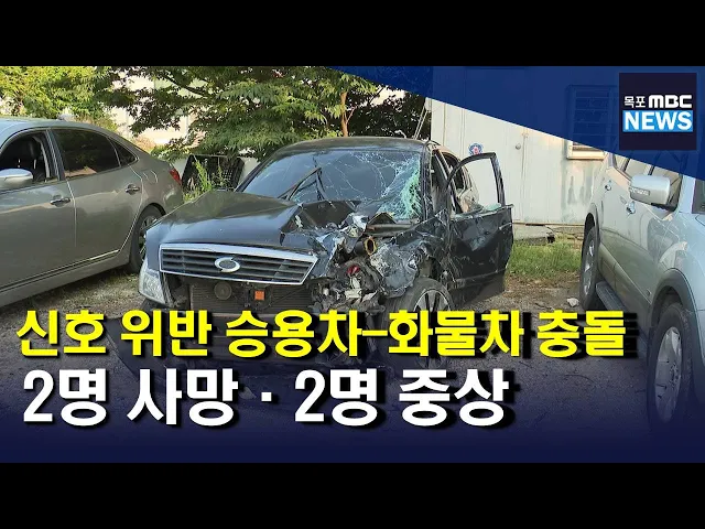 ◀ANC▶ 오늘 오전 전남 영암의 한 교차로에서 승용차가 화물차를 들이받아 2명이 숨지고 2명이 크게 다쳤습니다. 승용차가 신호를 위반하고 주행하다 사고를 낸 것으로 보입니다. 박종호 기자가 취재했습니다. ◀END▶ ◀VCR▶ 전남 영암군 삼호읍의 한 교차로 화물차가 교차로에 진입하는 순간 오른쪽에서 빠르게 달려...