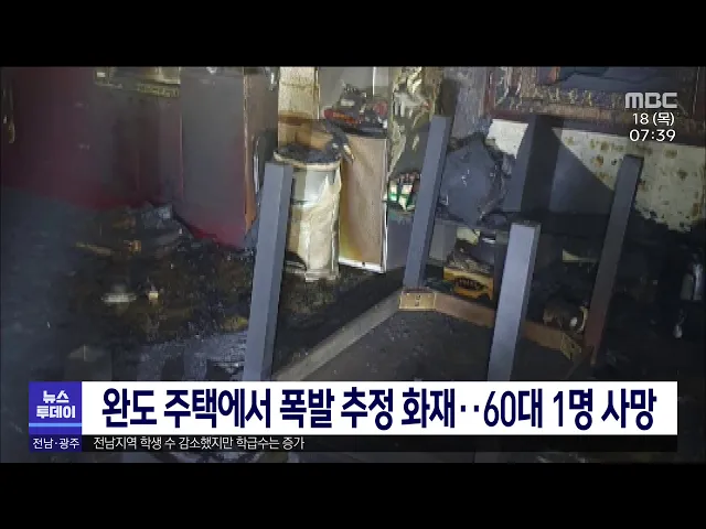 최종]완도 주택에서 폭발 추정 화재..60대 1명 사망