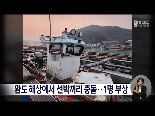 오늘(20) 오전 7시 10분쯤완도군 노화도 인근 해상에서2톤급 선박과 6톤급 선박이 부딪혔습니다.양 선박에 타고 있던승선원 3명은 모두 인근 어선 등에 구조됐으며1명이 다쳐 병원에서 치료를 받았습니다.해경은 상대 선박이 사각지대에 가려져보이지 않았다는 6톤급 선박 관계자의 진술을 토대로 정확한 경위를 조사하고 ...