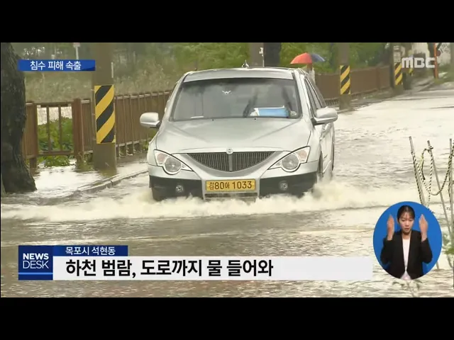 ◀ANC▶ 태풍이 몰고 온 폭우로 전남 곳곳에서 침수피해가 발생했습니다. 목포의 한 초등학교에서는 하천이 범람하면서 학생들이 대피하는 소동이 빚어졌습니다. 침수피해 현장을 김안수 기자가 다녀왔습니다. ◀END▶ 누런 황톳물이 하천을 넘어 초등학교 정문까지 차올랐습니다. 왕복 2차선 도로를 지나는 차량들도 차...