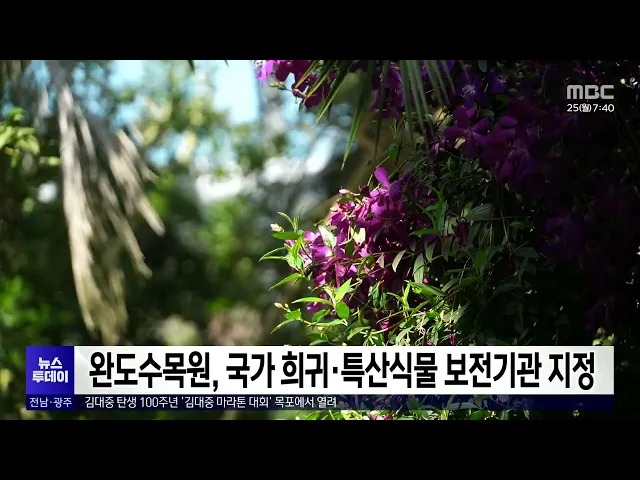 전라남도완도수목원이 산림청으로부터 '국가 희귀*특산식물 보전기관으로 지정돼 체계적 수집*증식 업무를 위한국고 지원을 받게 됐습니다.이번 지정은 희귀식물 90종 등수목원이 지닌 100여 개 식물자원의다양성 보전을 위해 이뤄졌으며,기후위기에 대응한 전남지역 자생종 보호 등 보전 기반이 강화될 것으로 기대됩니다....