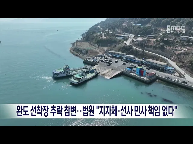 지난해 3월 완도 선착장에서 발생한 일가족 차량 추락 사망사고와 관련해, 완도군과 여객선 회사에 민사적 책임이 없다는 법원의 판결이 나왔습니다.광주지법 민사4단독 이재석 부장판사는 운전자가 가입한 보험사가 완도군과 선사를 상대로 제기한 '구상금 청구 소송'에서 "피고 2곳의 행위와 사고와의 인과 관계가 인정되...