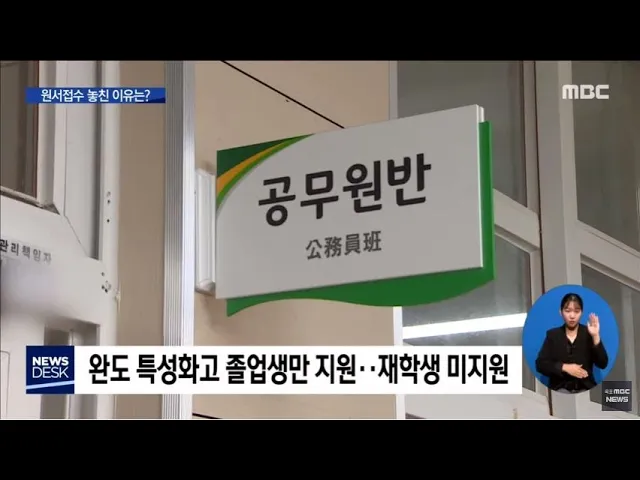 ◀ANC▶ 완도의 한 특성화고 학생들이 고졸 경력경쟁 공무원 임용시험에 응시원서를 접수하지 못하는 일이 발생했습니다. 학교 측은 학생들에게 안내를 했다고 하지만 어린학생들에 대한 세심한 관심이 부족했었던 것 같습니다. 김양훈 기자가 취재했습니다, ◀END▶ 해양수산의 메카인 완도군 해양수산 관련 지역인재 ...