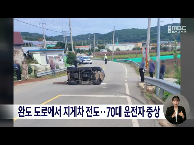 완도 도로에서 지게차 전도..70대 운전자 중상