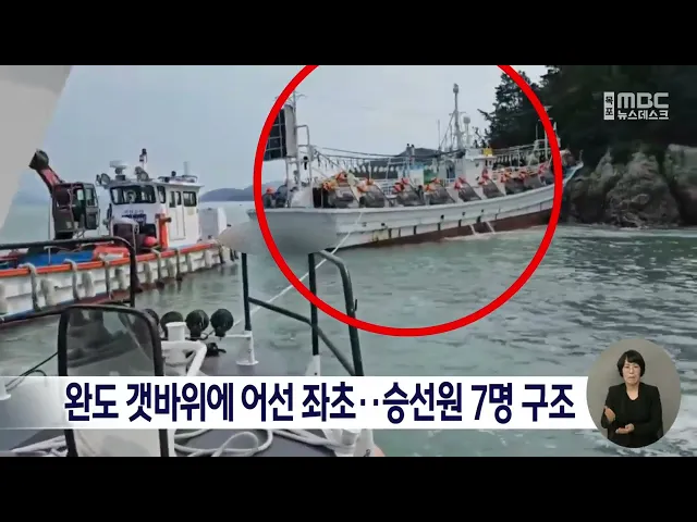 완도 갯바위에 어선 좌초..승선원 7명 구조