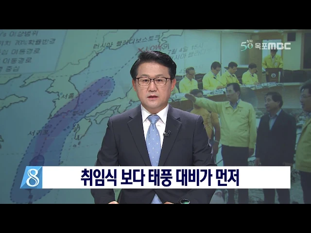 ◀ANC▶ 민선 7기 임기가 시작됐지만 장마와 함께 태풍이 북상하면서 단체장들이 취임식을 잇따라 취소했습니다. 취임 축하보다는 태풍 대비가 먼저라며 신임 지방자치단체장들은 현장으로, 현장으로 달려갔는데, 이런 초심 쭉 이어가길 기원해봅니다. 김양훈 기자가 보도합니다. ◀END▶ 태풍 영향권에 들어 있는 완도 ...