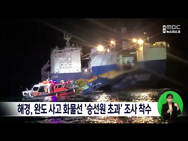 지난 17일 완도 해상에서 발생한 선박 충돌 사고와 관련해 화물선이 승선원을 초과 운항한 것으로 드러나해경이 조사에 착수했습니다. 완도해경은 사고 당시 화물선에 정원보다 11명이 더 많은 58명이 타고 있었던 것을 확인하고 조사를진행하고 있습니다.한편 해경은 사고 선박들에 대해 업무상 과실 선박 파괴와 선박안전...