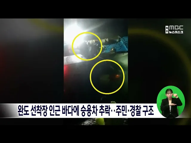 어제(18) 저녁 7시 쯤 완도군 망석리 선착장 앞 바다에 승용차가 추락했습니다.신고를 받고 출동한 완도해경은마을 주민들과 함께 40대 승용차 운전자를구조했습니다.해경은 운전자와 목격자 등을 상대로정확한 사고 경위를 조사하고 있습니다.