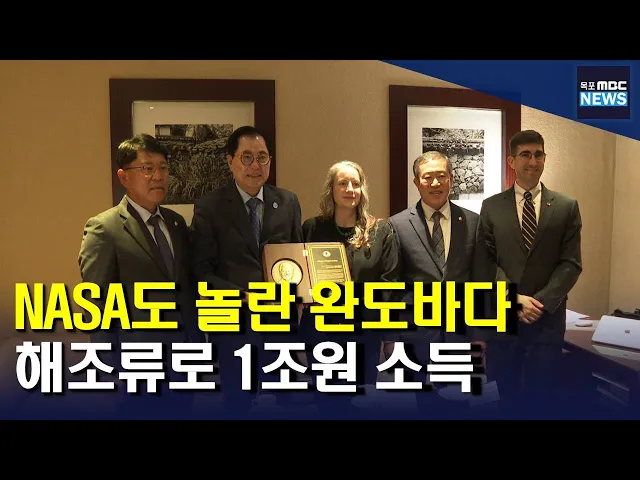 2년전 미국 항공우주국이 완도 주변 해조류 양식장 인공위성 사진을 분석한 자료를 발표해 세계적으로 주목받게 되면서 완도군이 NASA에 감사장을 전달했습니다 ---육지와 바다 사이에서 돌미역을 채취하는 어업 방식이 국가중요어업유산으로 지정됐습니다. ---신안군이 분재대전을 통해 20억 원 상당의 희귀분재를 공개하...