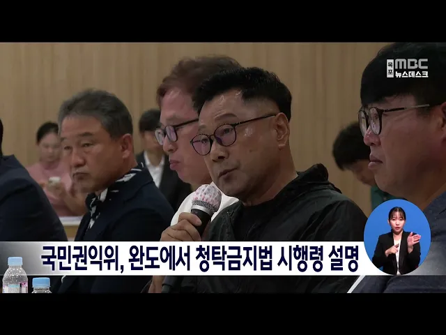 국민권익위원회 정승윤 부위원장이 오늘(23) 완도군을 찾아 어민들을 대상으로 농수산물과 농수산 가공품 선물 상한액을 상향하는 내용의 청탁금지법 시행령 개정안을 설명했습니다. 권익위 설명회에는 전국어민연합회와 한국전복양식협회 등 수산 양식 어민 대표자들이 참석해 추석과 설날 30만원까지 상향 조정된 시행령 ...