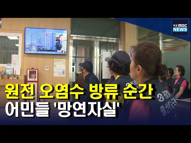 ◀ANC▶ 설마설마했는데 결국 일본 후쿠시마 원전 오염수 방류가 시작됐습니다. 생계가 걸린 어민들은 물론 일반 시민들도 오염수 방류 소식에 망연자실했고 분노했습니다. 서일영 기자가 취재했습니다. ◀END▶ ◀VCR▶ 일본의 후쿠시마 원전 오염수 방류가 예정돼 있던 오후 1시 위판을 앞둔 어민들이 대기실 TV 앞으...